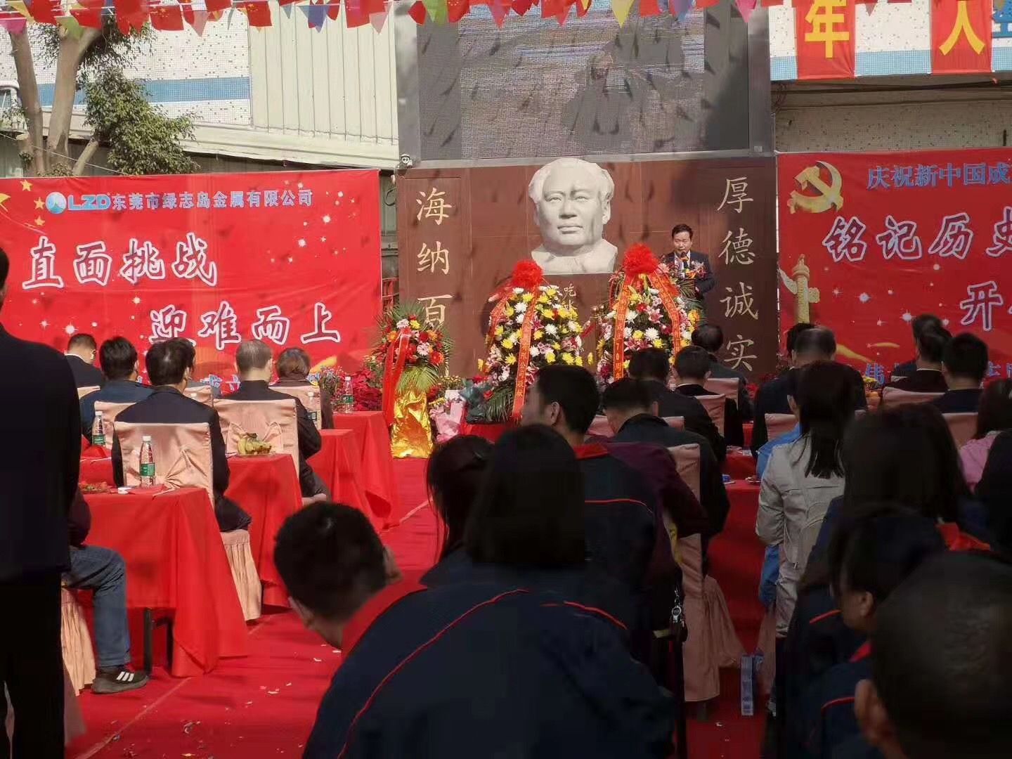 ▲綠志島董事長朱祖生先生帶領我們喊——中國共產黨萬歲!人民萬歲!